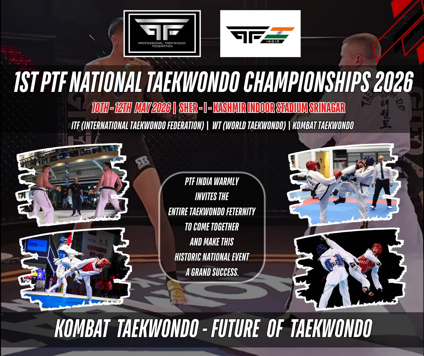 Srinagar, India – The Professional Taekwondo Federation (PTF) India has officially announced the 1st PTF India National Taekwondo Championships, scheduled to take place May 10–12, 2026, at the Sher-i-Kashmir Indoor Stadium, Srinagar, India.